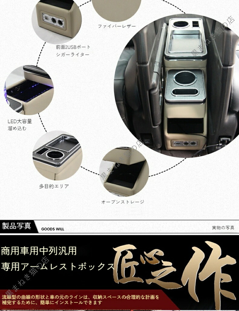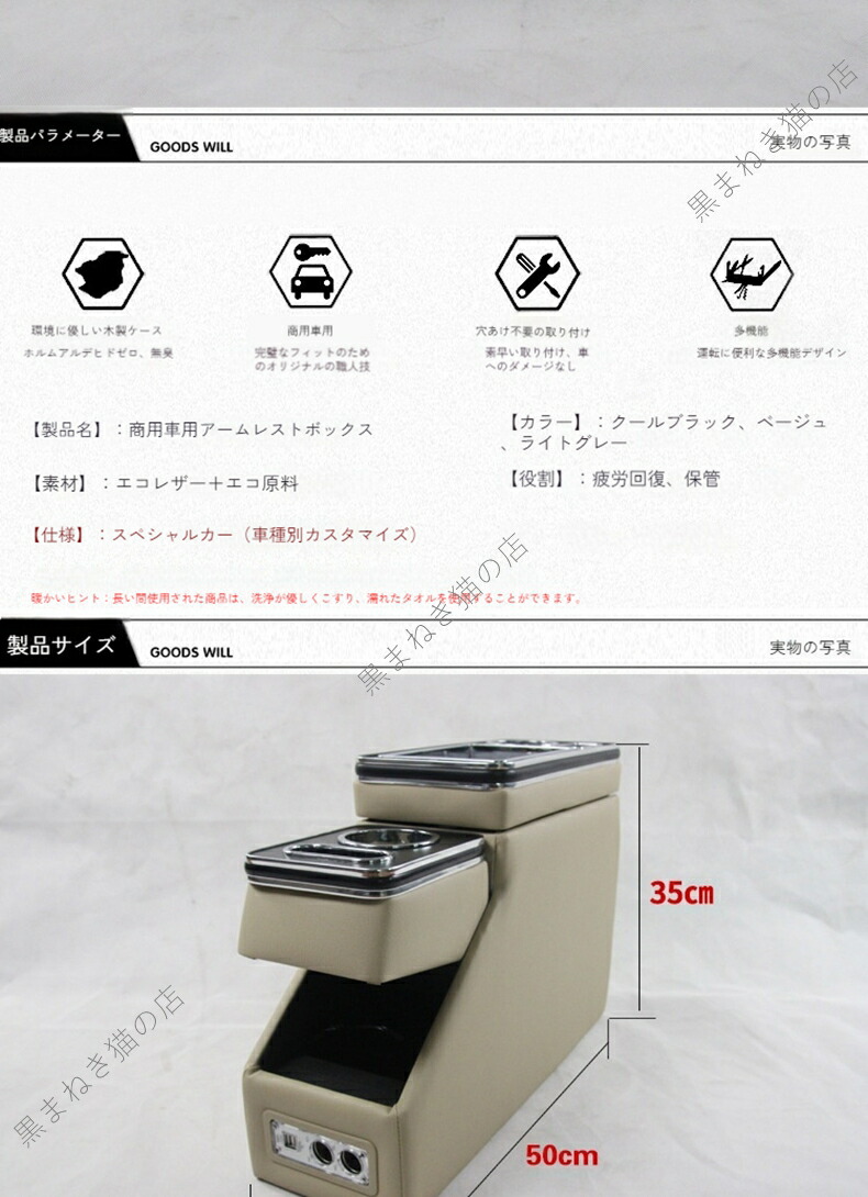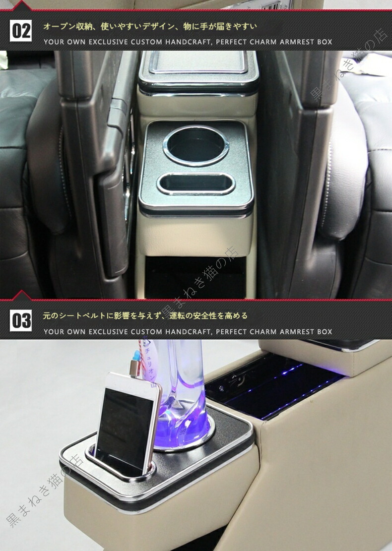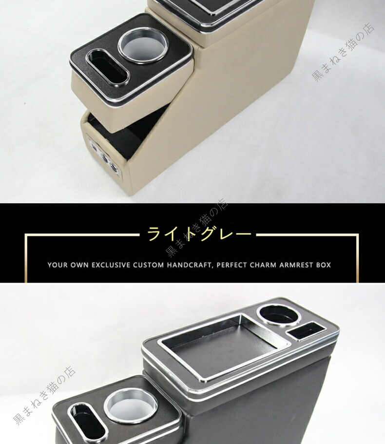 コンソールボックス 車用アームレスト ブラック グレー ベージュ LEDライトが付いていません +LED