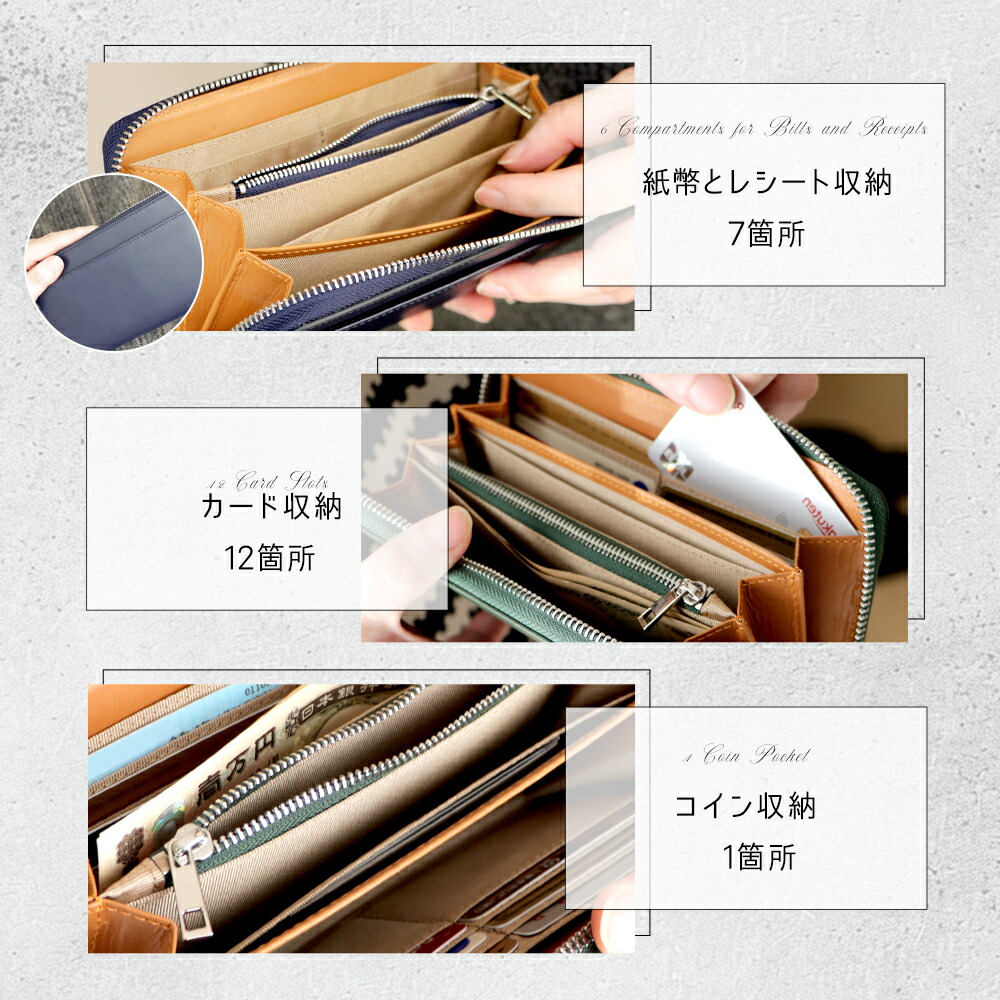 紙幣・レシート収納 ×7 / カード収納 ×12 / 小銭入れ ×1