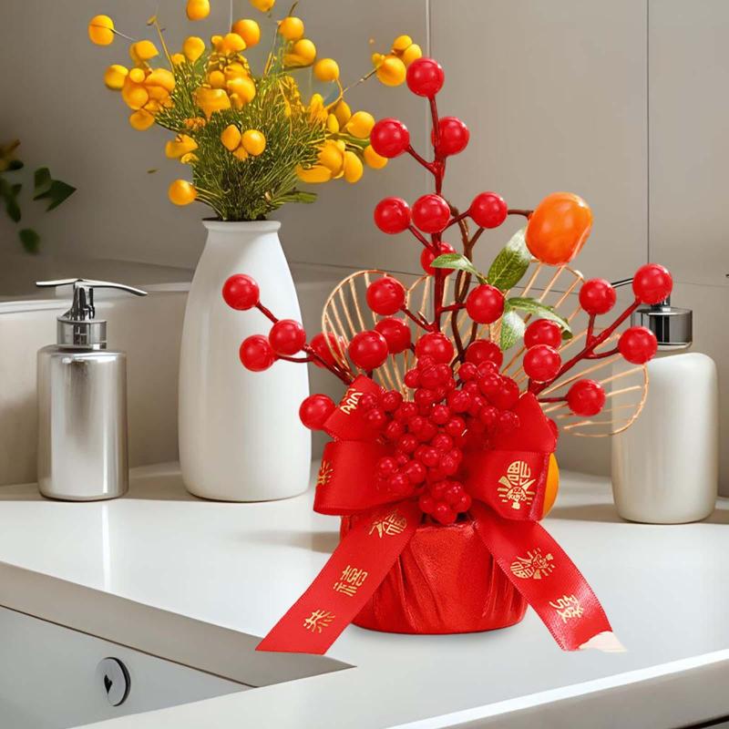 中国の旧正月装飾造花祝福バケツデスクギ ベリー ラッキーポーチ 猫 ザクロ