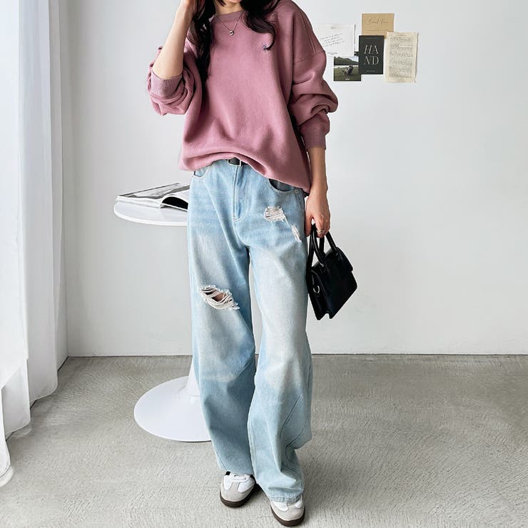 GeeRA 表ピーチ裏起毛スウェット トップス スウェット トレーナー 通販 M L LL オートミール ピンク ネイビー 杢グレー チャコール ライトピンク