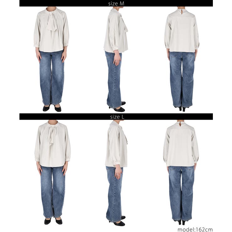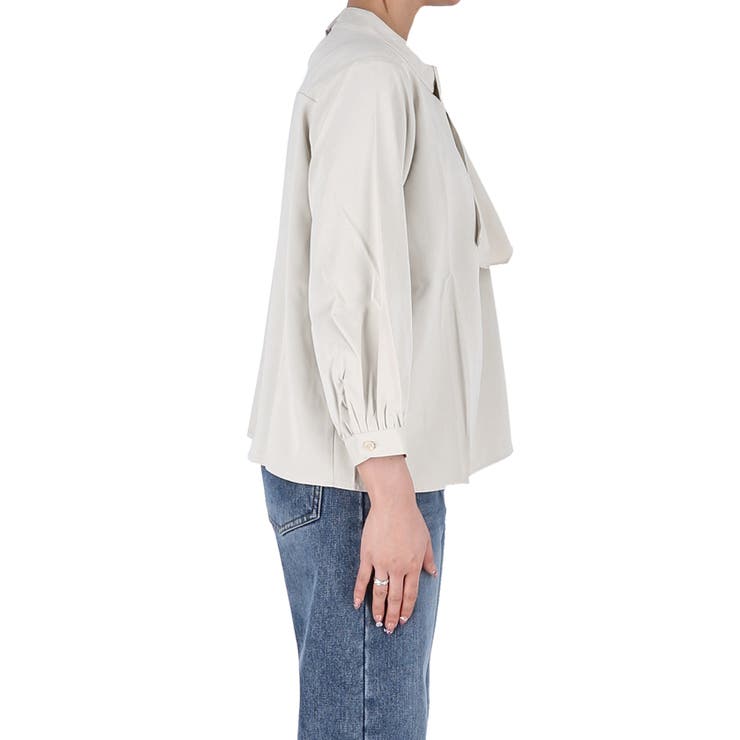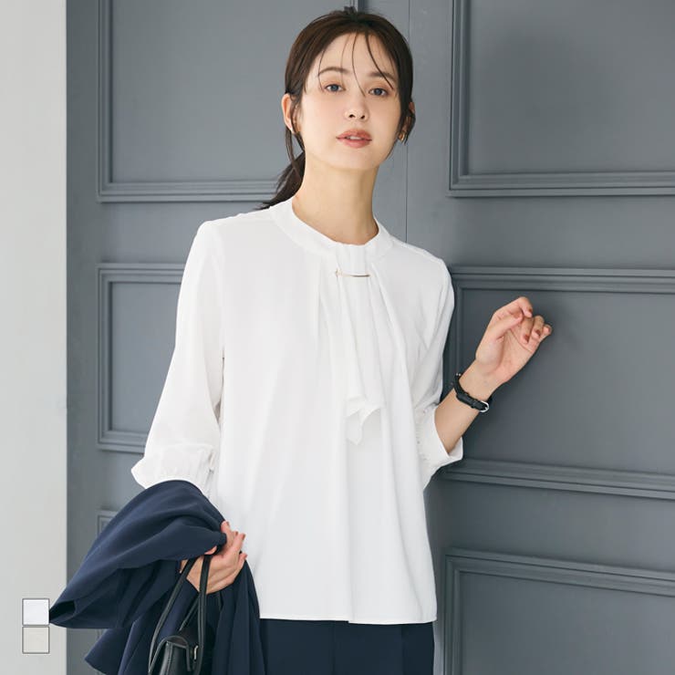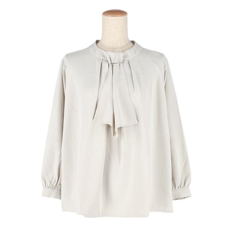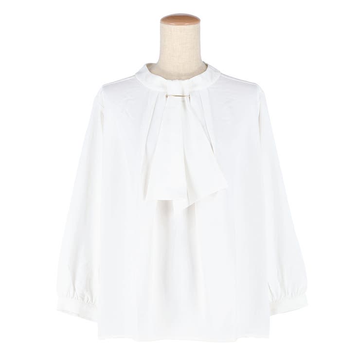 coca ボウタイ風アクセ付きブラウス トップス シャツ ブラウス 超目玉商品 [M] [L] [White] [Lt.beige]