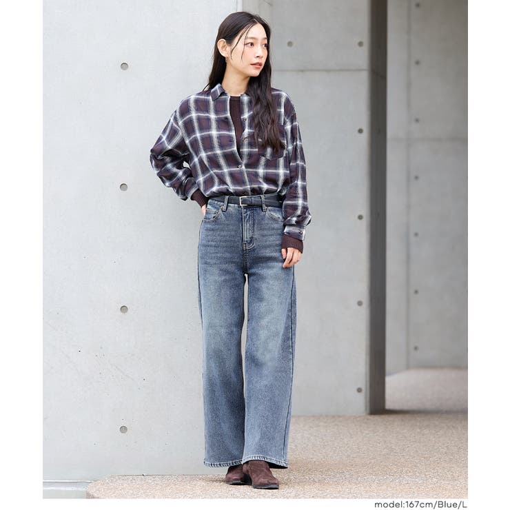 coca 裏起毛デニムワイドパンツ パ ボトムス パンツ 続々登場 [S] [M] [L] [XS] [XL] [2XL] [Blue] [Lt.Blue] [Black]