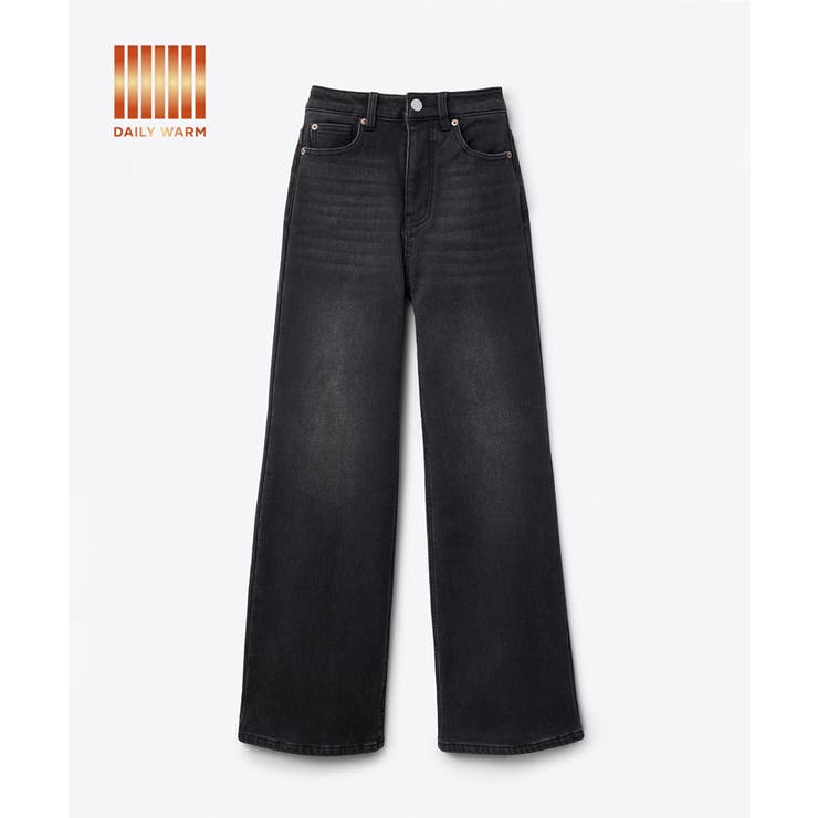 ワイドパンツ デニム レディース デニムパンツ 裏起毛 パンツ 冬 ボトムス 裏起毛パンツ ストレート ジーンズ ロング ジーパン ボトム ズボン ゆったり 楽ちん ハイウエスト 無地 黒 ブル 秋冬