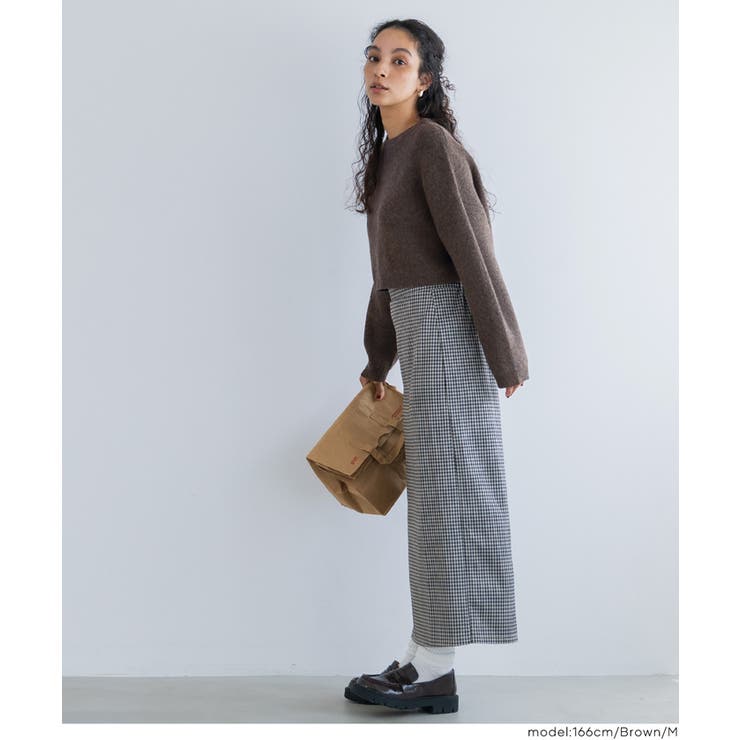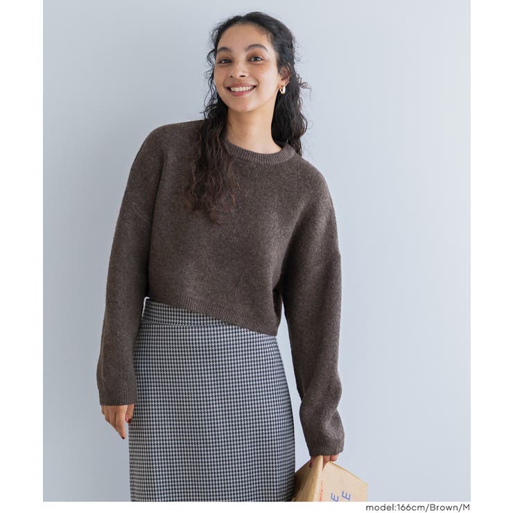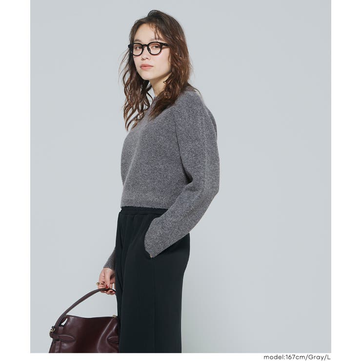 coca 縮絨ニットクロップド丈トップ レディースファッション 早い者勝ち [S] [M] [L] [Brown] [Gray] [Lt.Pink]