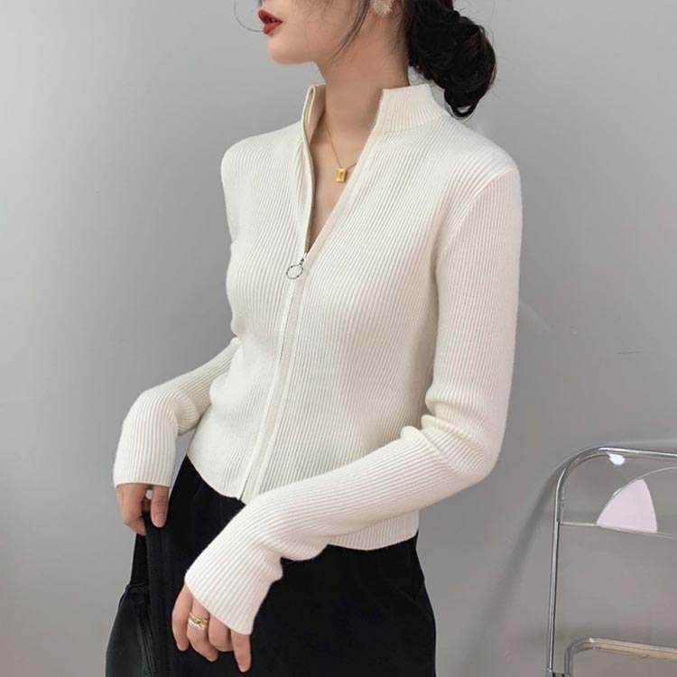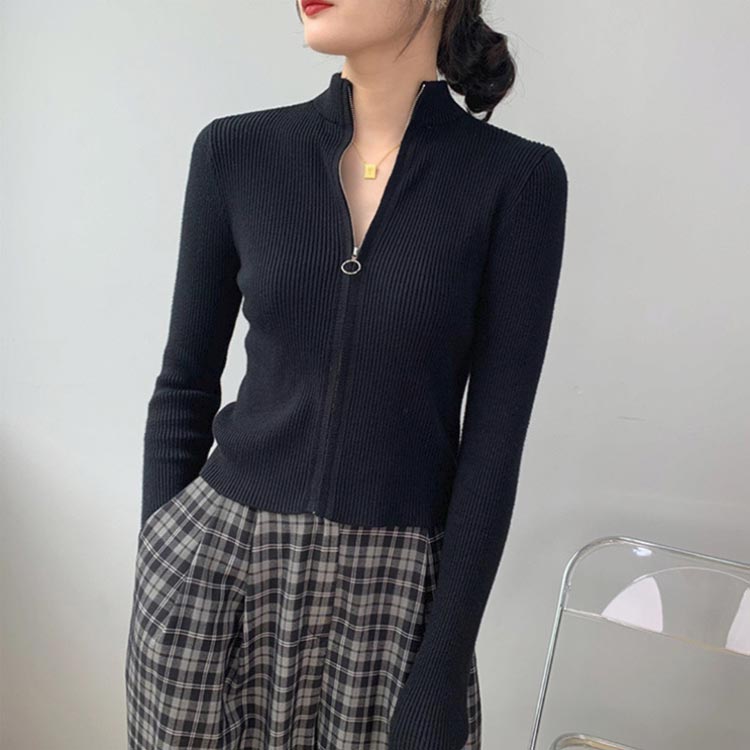 ショートニット シンプル ジップアップ レディースファッション 続々登場 ブラック ホワイト グレー レッド S(35-42.5KG) M(42.5-50KG) L(50-55KG) XL(55-62.5KG)