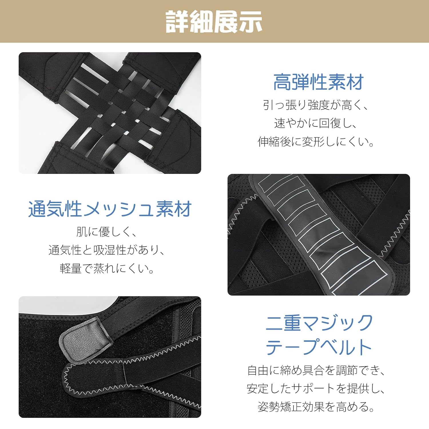 姿勢サポーター 猫背ベルト 姿勢ベルト 背筋ベルト 通気性 装着簡単 調節可フリーサイズ 男女兼用 脱着簡単