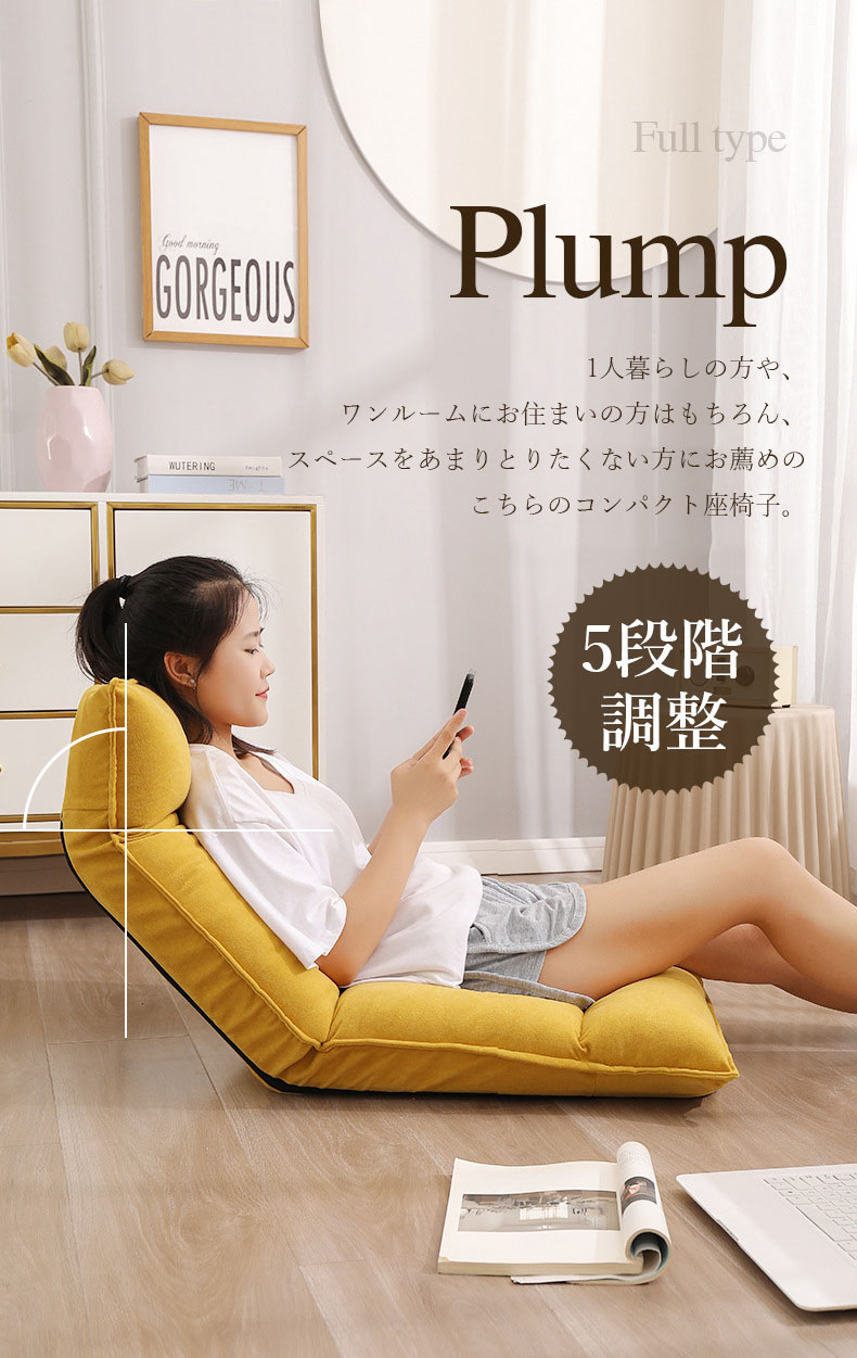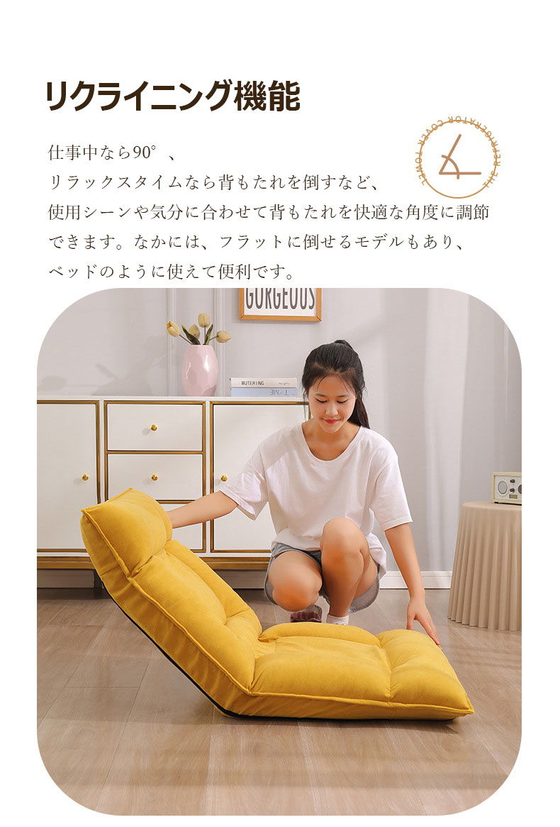 座椅子 コンパクト 折りたたみ 腰痛 イエロー グリーン ピンク ベージュ ライトグレー ダークグレー