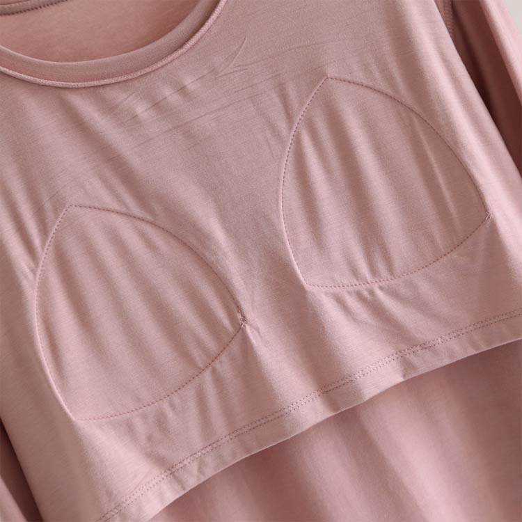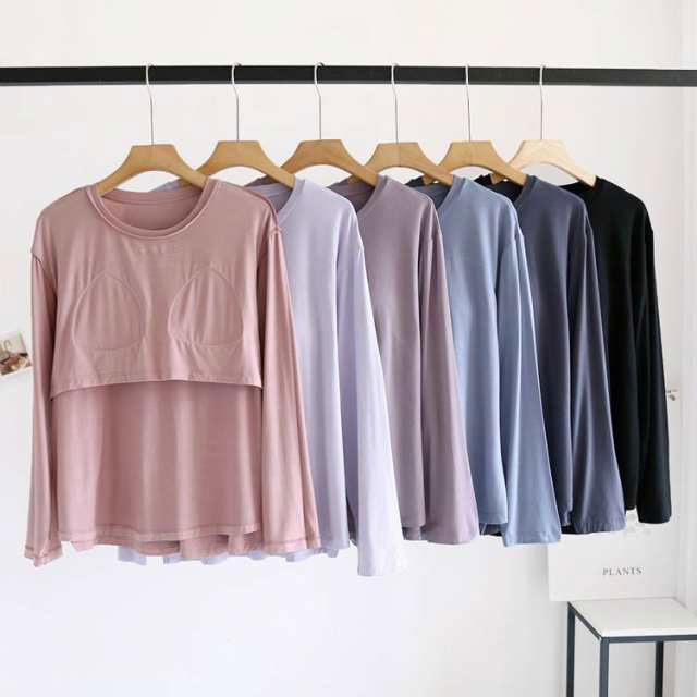 パット付長袖Tシャツ ラウンドネック レディースファッション 特集 ピンク ブルー ダークグレー ダークパープル ライトパープル ブラック M L XL 2XL