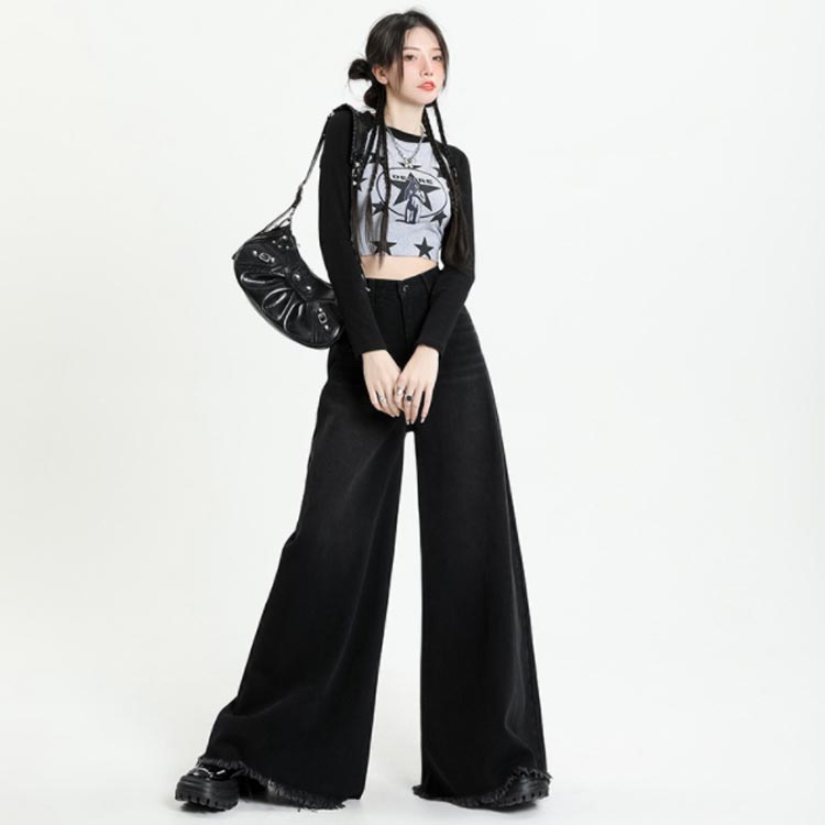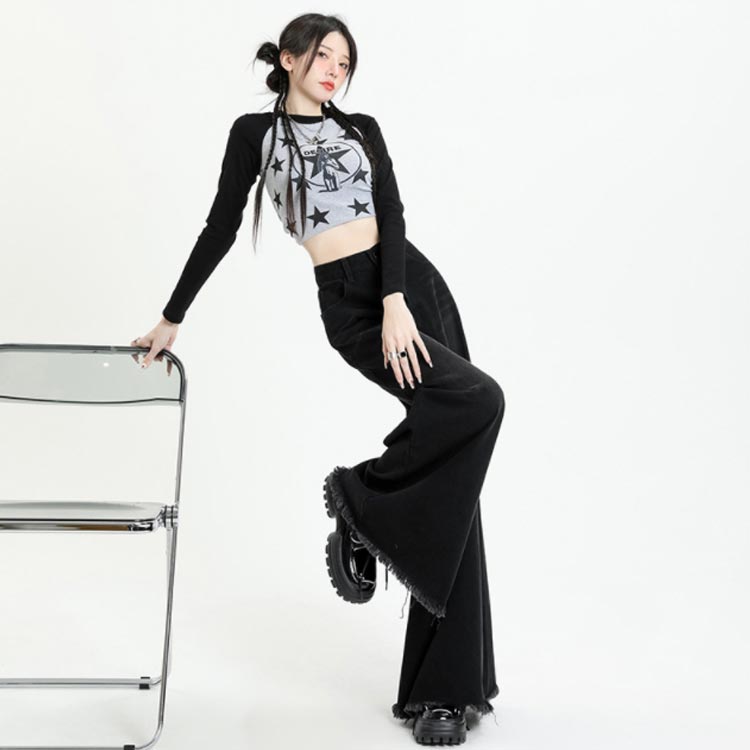 ブラックデニム フレア マキシ丈 裾フ レディースファッション 続々登場 ブラック普通丈 ブラックロング丈 XS S M L XL 2XL