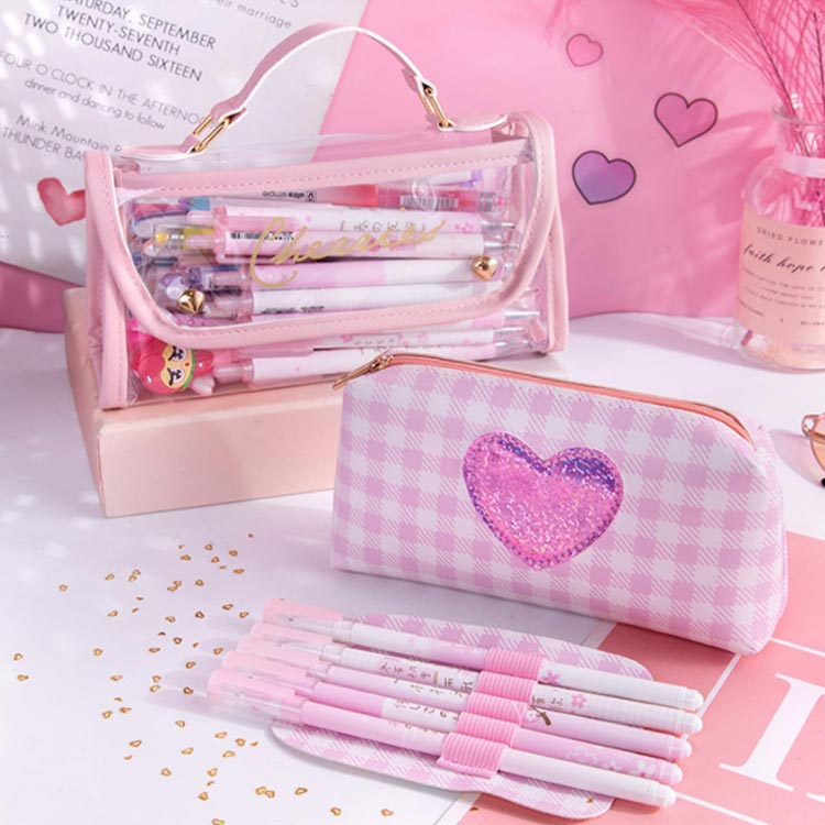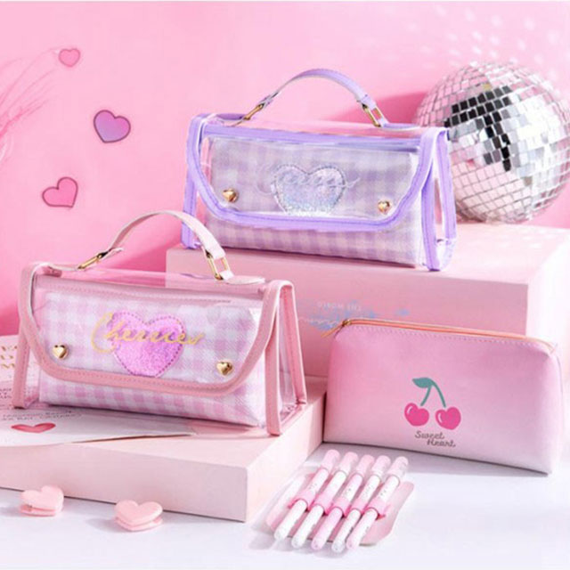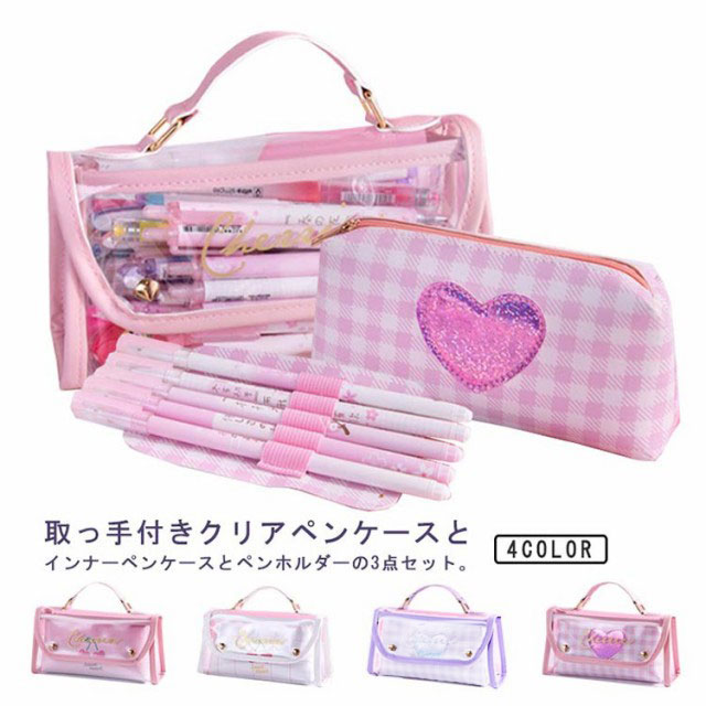 ペンケース 筆箱 大容量 3点セット 文房具 事務用品 筆記具 ペンケース 通販 ピンクハート柄 パープルハート柄 ホワイトチェリー柄 ピンクチェリー柄