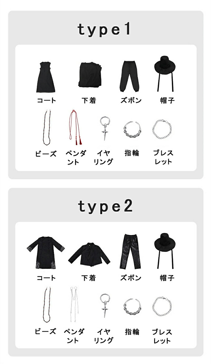 コート・下着・ズボン・帽子・ペンダント・イヤリング・ブレスレット・指輪・ビーズ