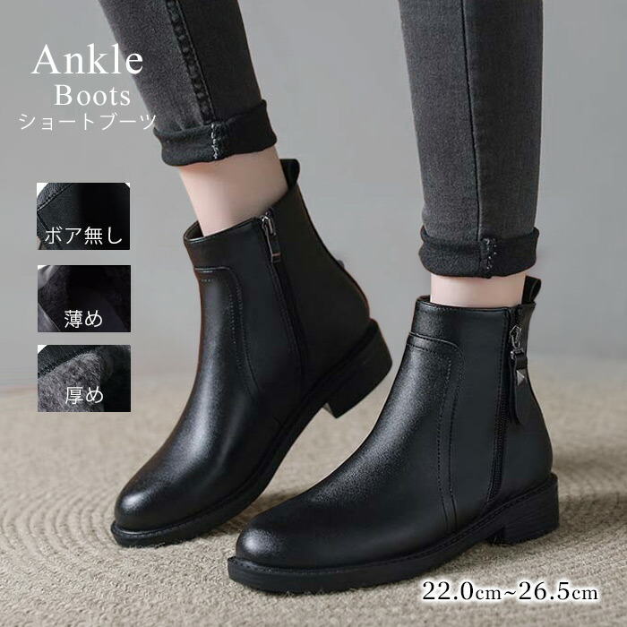 ショート ブーツ レディース ペタンコ レディース靴 ブーツ その他 人気 22.0 22.5 23.0 23.5 24.0 24.5 25.0 25.5 26.0 26.5 ブラック ボア無し ブラック(薄め) ブラック(厚め)