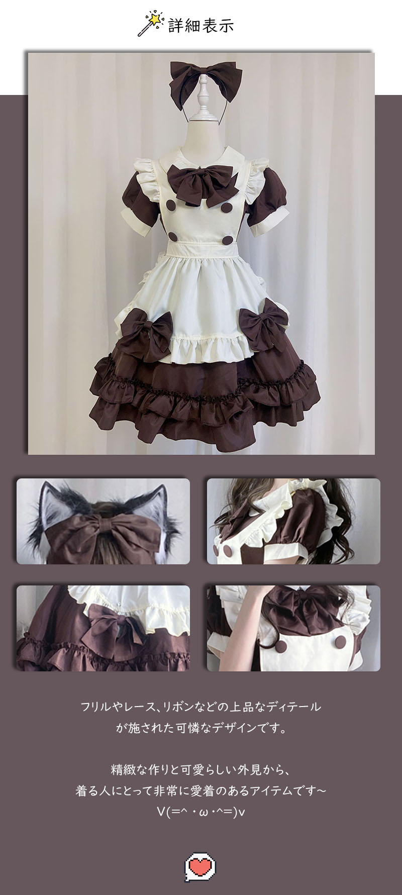 ハロウイン、学校の劇、演劇、テーマコスチュームパーティーのための素晴らしいメイド服です!コスプレが初めての方も挑戦しやすい衣装です。普段のおでかけのおしゃれにはもちろん、原宿系夢かわいい系ガーリー、森ガール、姫系等ファッションがお好きな方や、ゴスロリロリータ系コスプレコスチューム衣装のドレス、ライブイベントでの双子コーデ等にもご利用いただけます。
