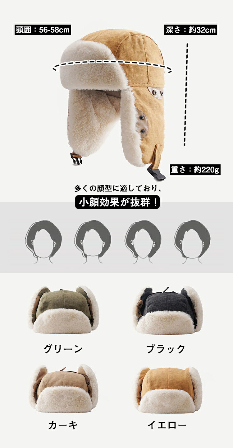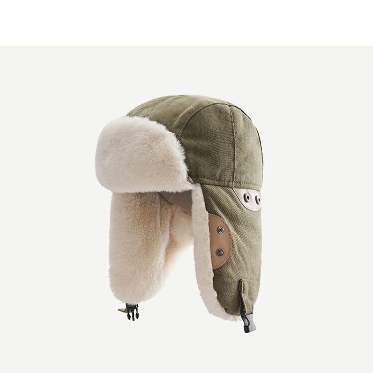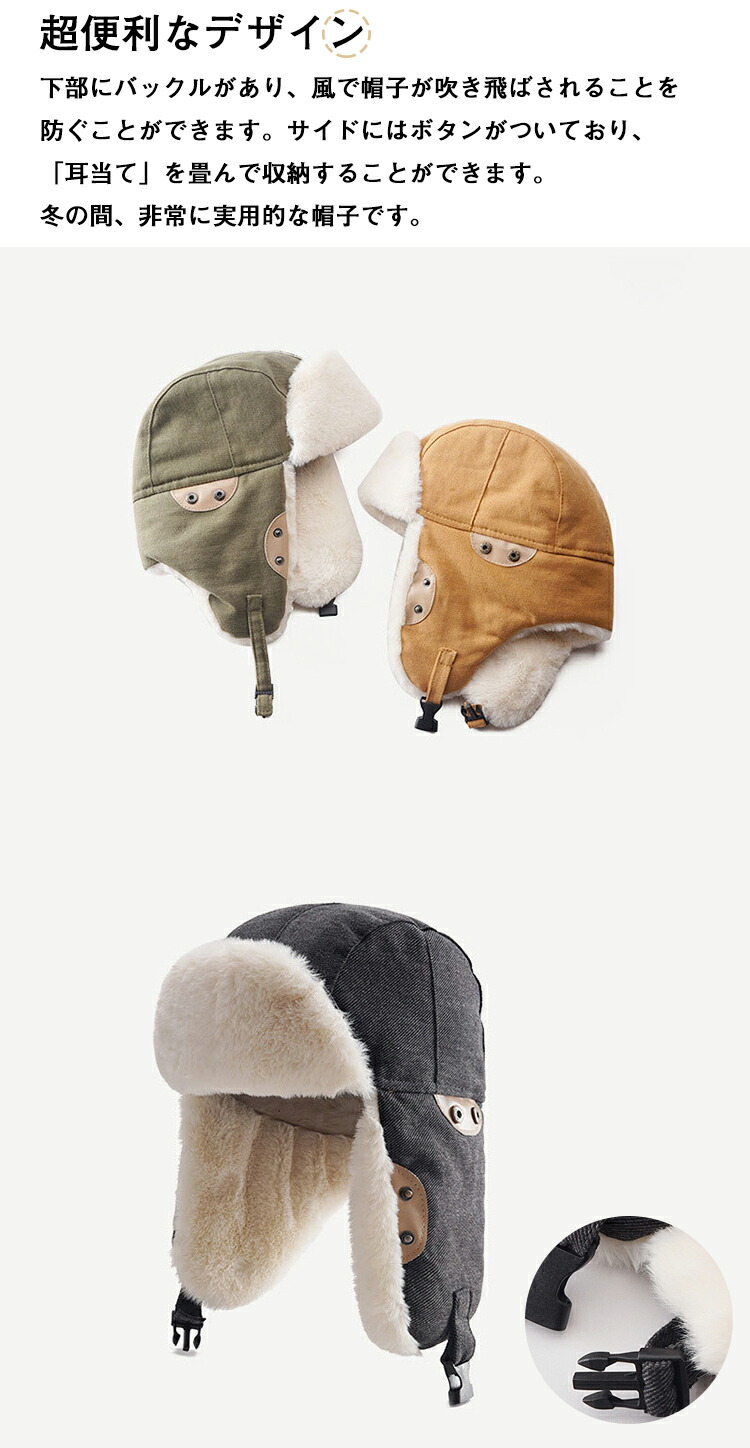 【超便利なデザイン】下部にバックルがあり、風で帽子が吹き飛ばされることを防ぐことができます。サイドにはボタンがついており、「耳当て」を畳んで収納することができます。冬の間、非常に実用的な帽子です。