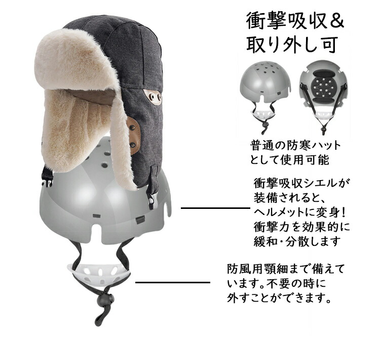【衝撃吸収&取り外し可】衝撃吸収インナーが装備されると、ヘルレメットに変身!衝撃力を緩和・分散します。防風用顎細まで備えています。不要の時に外すことができます。