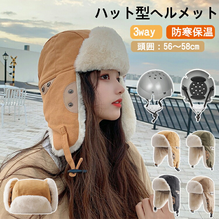 ヘルメット 自転車 大人用 帽子型ヘルメット 耳当て 防寒 フライトキャップ 裏起毛 ボア 秋冬 おしゃれ ふわふわ あったか 暖かい 厚手 カジュアル 防災 日よけ 落下防止 冬用 飛行帽 あご紐