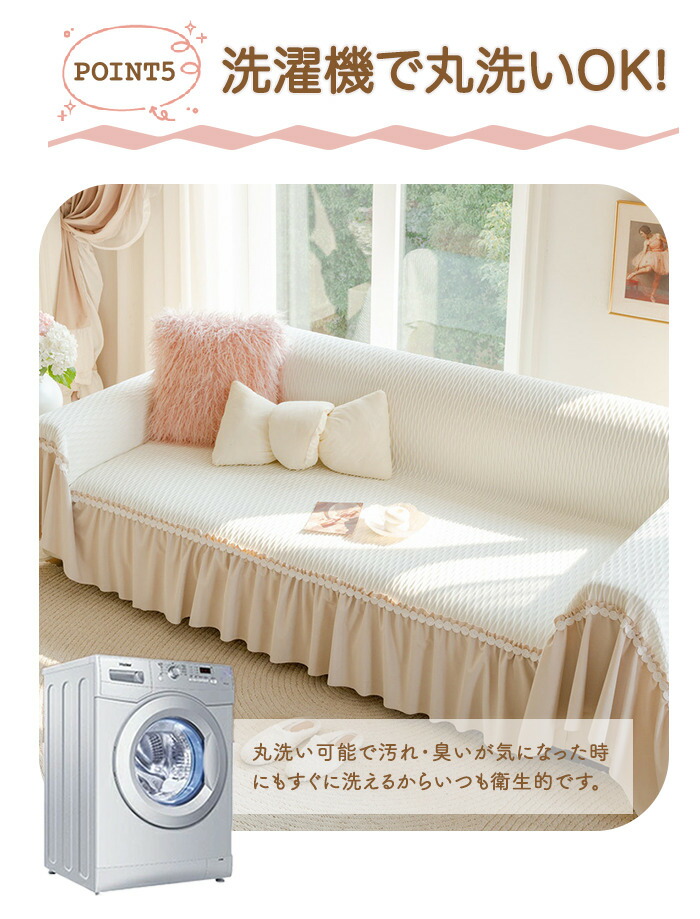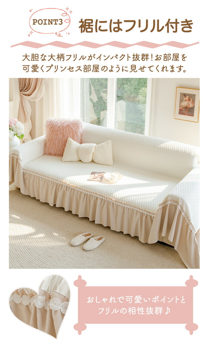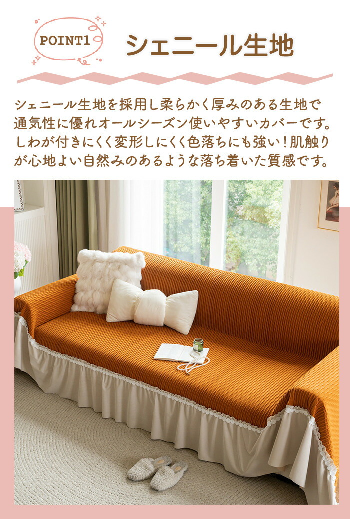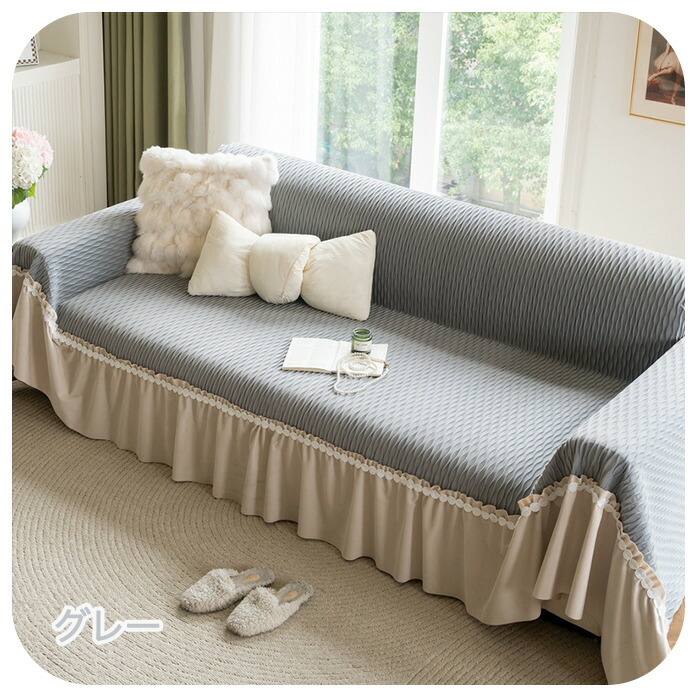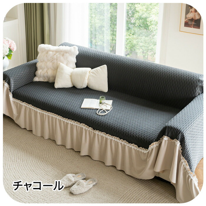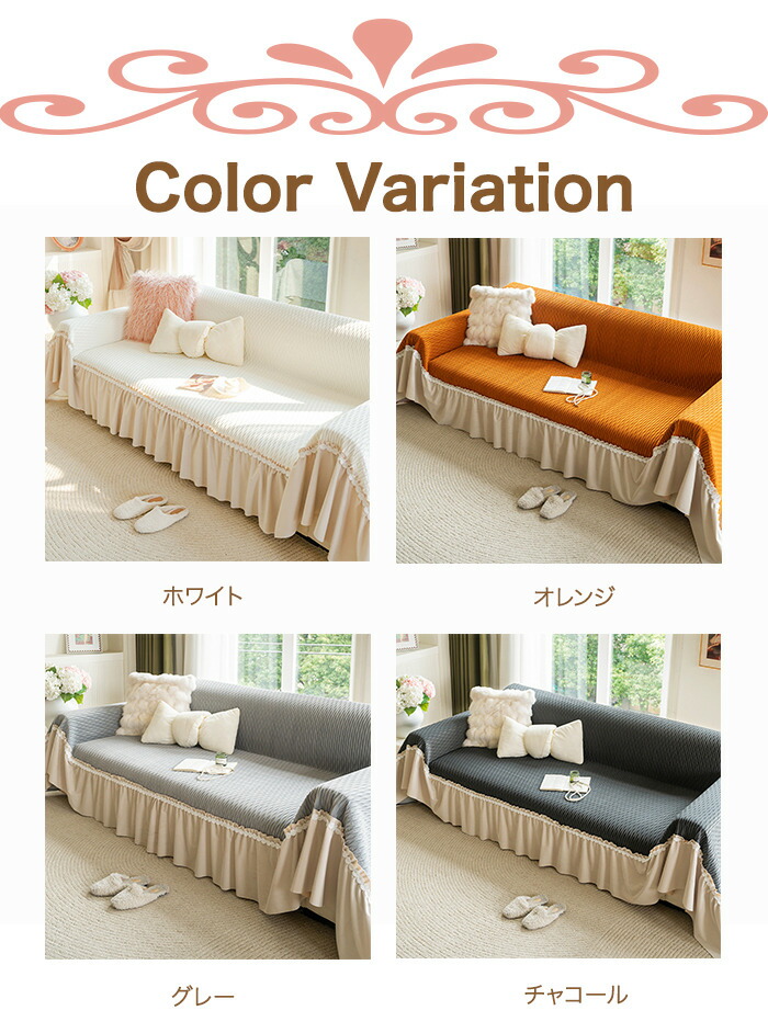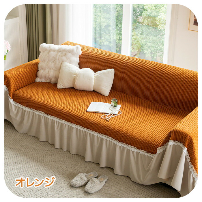 ソファーカバー かけるだけ 姫系 フリ ホワイト オレンジ グレー チャコール 180*130cm 180*150cm 180*180cm 180*230cm 180*260cm 180*280cm 180*300cm 180*340cm 180*380cm