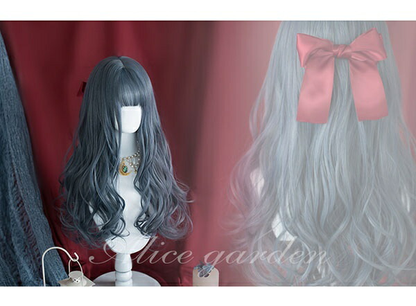 ウィッグ lolita メッシュ ロリータ風 原宿風 かつら 巻き毛 ぱっつん前髪 グラデーション グレー ブルー レディース コスプレウィッグ 可愛い ロング コスチューム 仮装 大人 耐熱ウィッグ