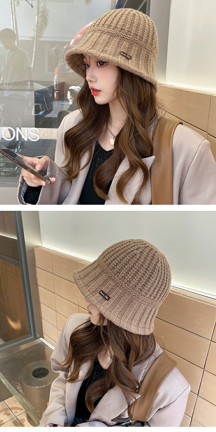 【防寒対策・小顔効果】太めの糸をざっくりと厚手に編み込み、ボリューム感たっぷりの仕上がり、お顔の輪郭を包み込むようなツバ付きタイプなので、小顔見えも叶う♪