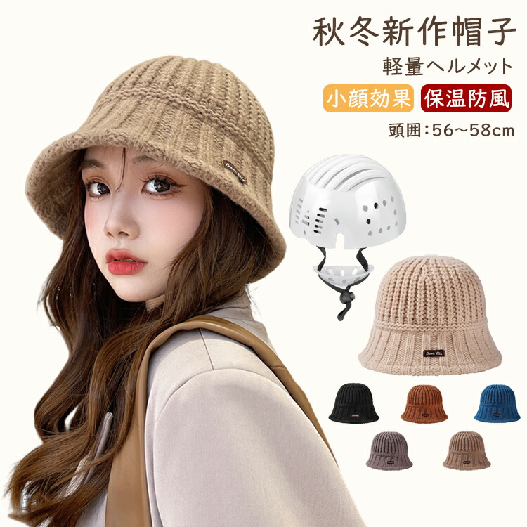 帽子型ヘルメット レディース 帽子 ニット帽 防寒 軽量 ヘルメット 自転車 おしゃれ 女性用 大人用 バケットハット型 日よけ UVカット 暖かい 厚手 ふわふわ ボア 落下防止 秋冬 お出 可愛い