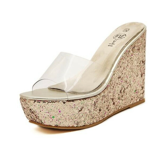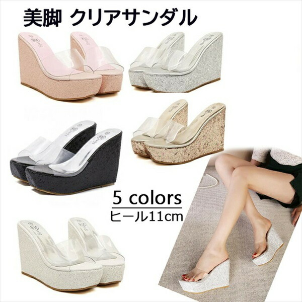 ウェッジソール サンダル 厚底 ウエッジソール 厚底サンダル レディース ヒールサンダル ミュール キラキラ 美脚 クリアサンダル パーティーサンダル 透明 履きやすい ヒール11cm