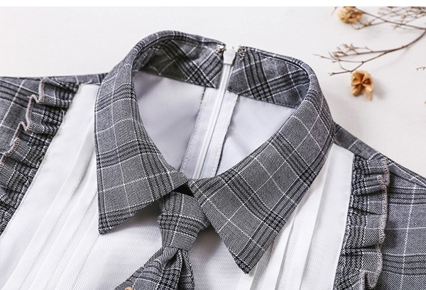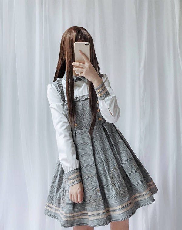 ワンピース ロリータ 探偵風 制服 チェック柄 秋 冬 学生風 シンプル コスチューム 衣装 ゴスロリ セット かわいい 長袖 袖あり 膝丈 ショート丈 ハイウエスト 仮装 デート 日常着 レディース