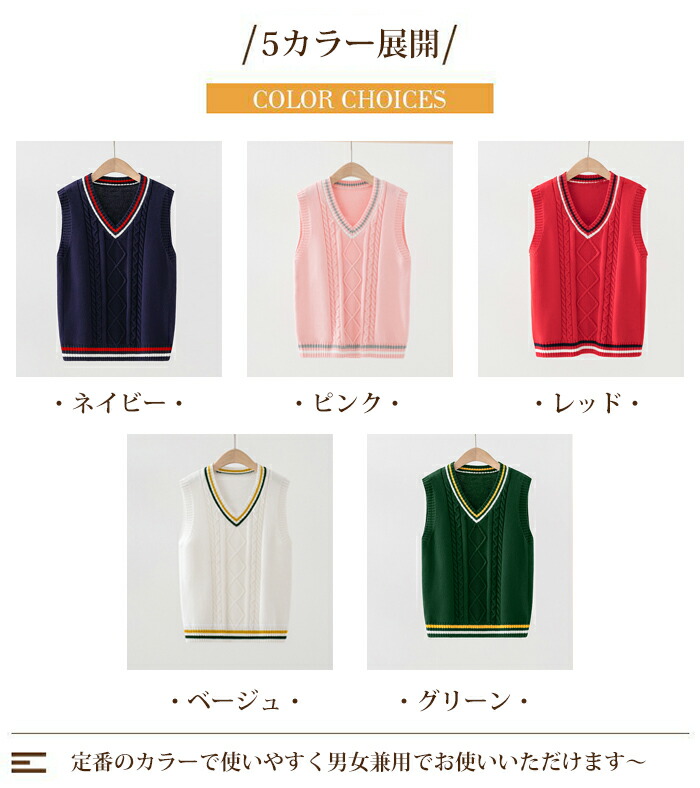 男女兼用 ニットベスト キッズ ジュニ レディースファッション 豊富な品揃え ネイビー ピンク レッド ベージュ グリーン 110cm 120cm 130cm 140cm 150cm 160cm 170cm