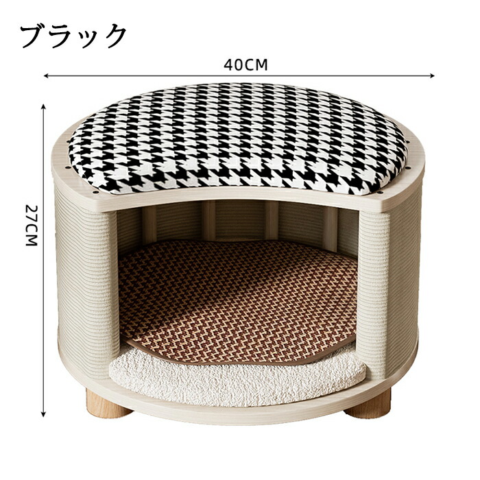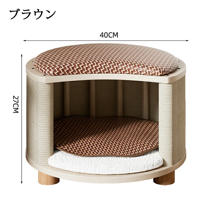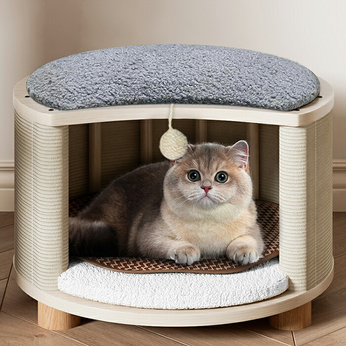 ブナ材で作られた猫用ベッドで、爪に強く、噛んでも破れにくい素材で丈夫で長持ちし、長く使えます