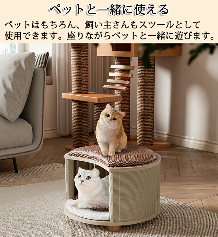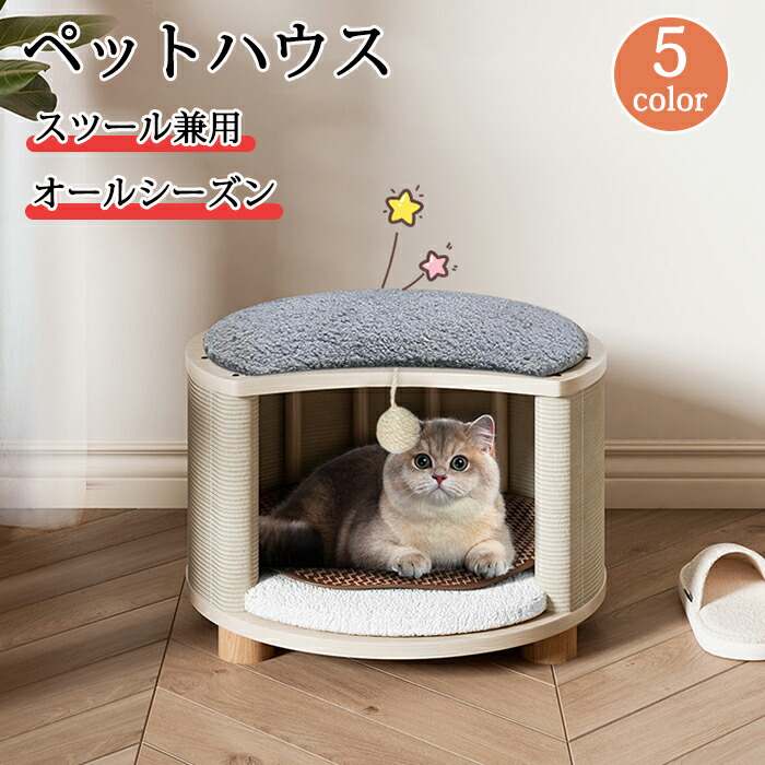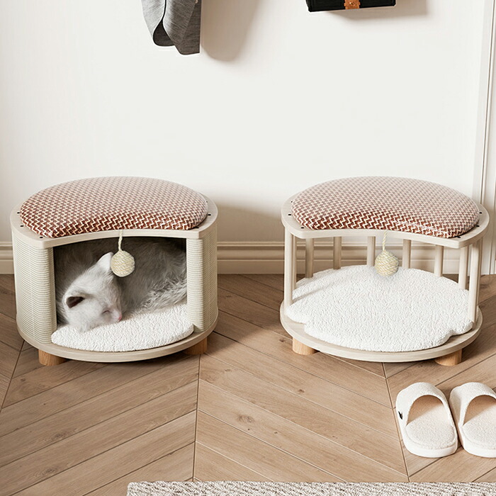 キャットハウス スツール兼用 ペットベッド ペットハウス スツール ペットベッド 猫 ペットスツール 犬 キャット ハウス ドーム型 猫 ハウス ベッド ドッグ 小型犬 室内用 椅子 オールシーズン 木製 クッション ストレス解消 通気性いい