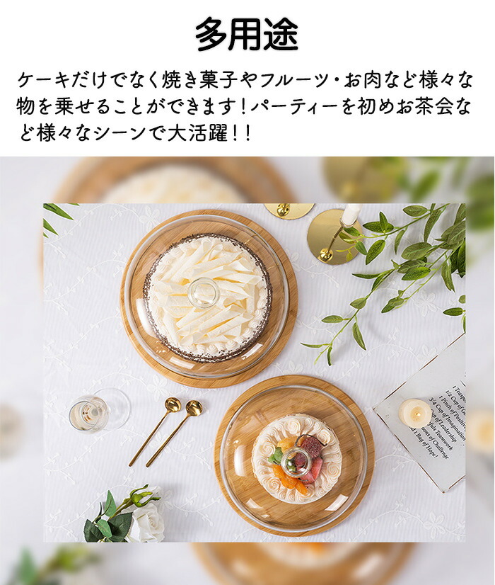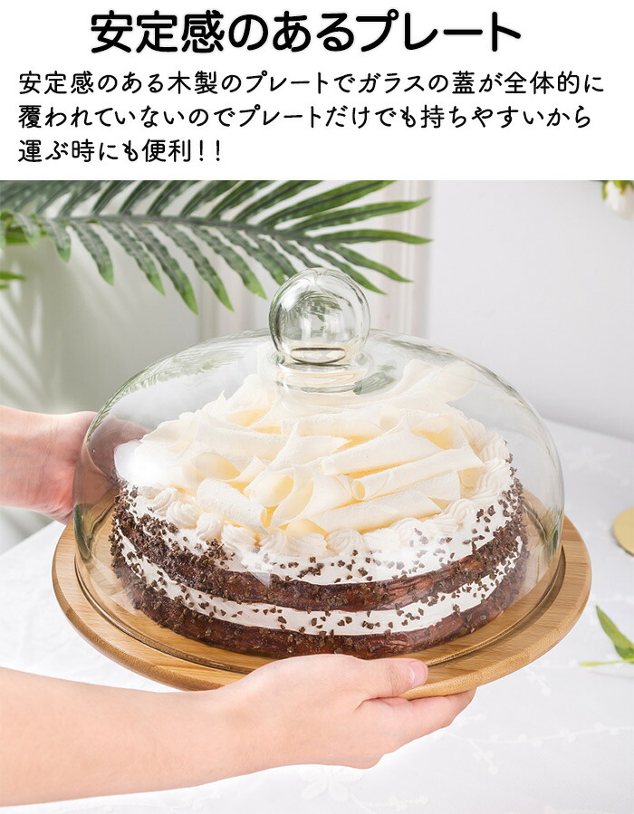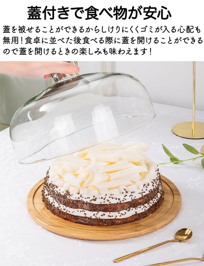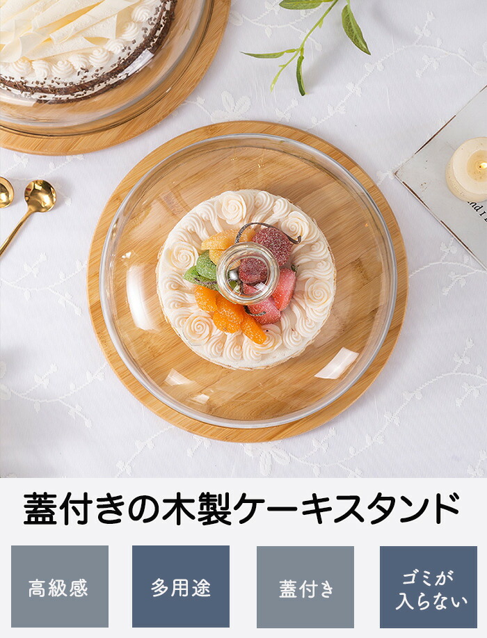 ケーキスタンド 木製 お菓子スタンド 蓋つき 竹製 ガラス ガラスドーム ケーキ台 持ち手付き フルーツスタンド 什器 スタンド ケーキドーム プレート デザートプレート パーティー イベント お菓子