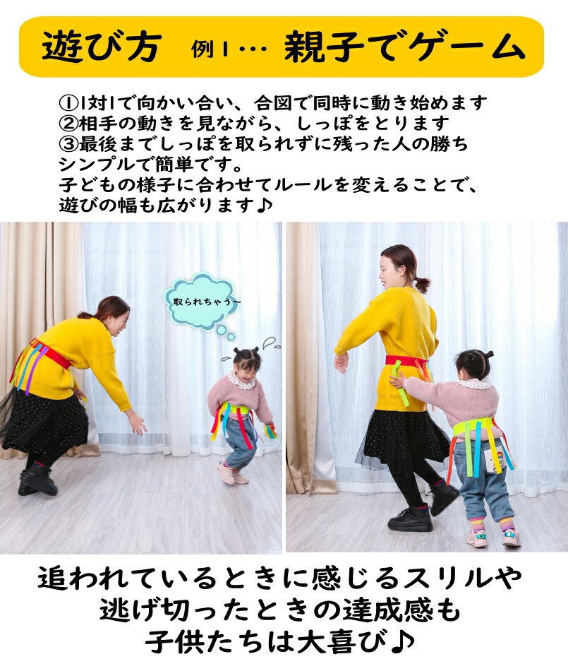 しっぽ取り 2個セット しっぽ鬼 スポーツ 鬼ごっこ 知育玩具 体育 マジックテープ式 タグラグビー 運動会 体育祭 療育 体幹 トレーニング 保育園 幼稚園 幼児 小学校 低学年 大人 外遊 小学生