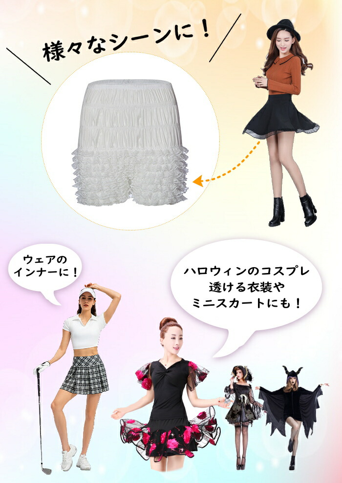 見せパン キッズ ダンス 子供 衣装 レディース インナー 下着 ペチコート 通販 S(キッズ~S相当) M(M~L相当) L(L~2XL相当) ブラック ホワイト レッド ブルー ピンク