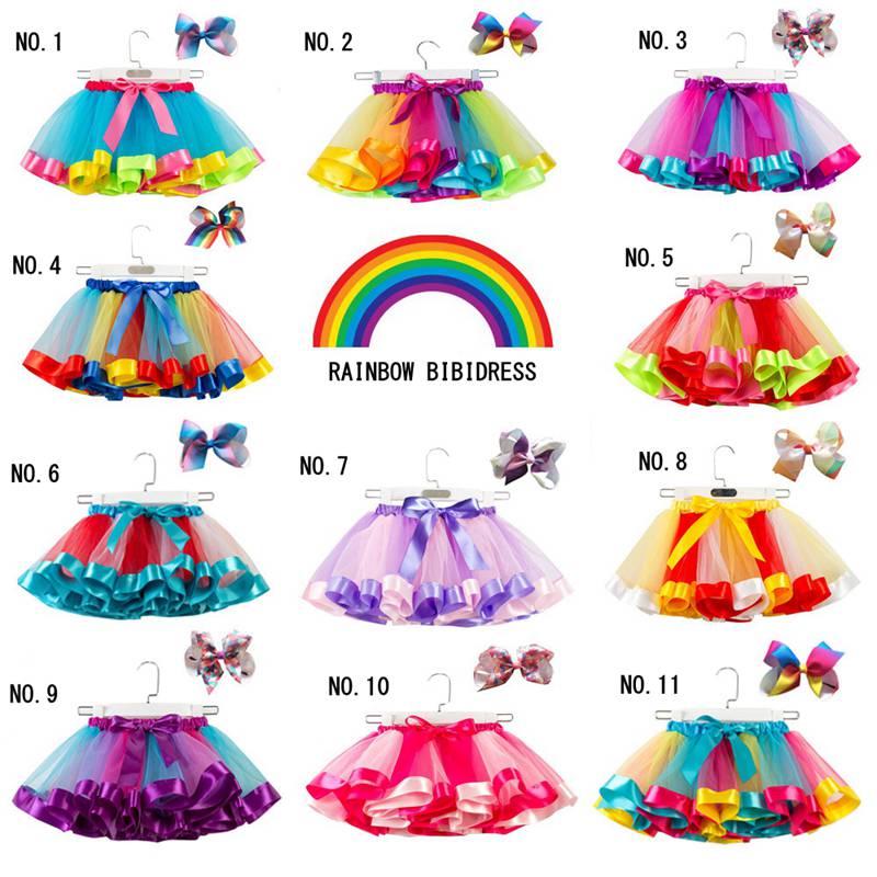 カラフル彩衣装カラーチュチュスカートチュチュスカート幼児、キッズサイズ リボンセットレインボー色チュチュスカートカラフル ふんわり広がる カラーチュチュスカート tulleskirt 小悪魔衣装