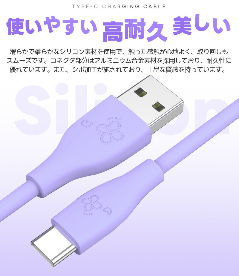 USB-A to USB-Cケーブル データ転送 高耐久 USB Type-C ケーブル 3A QC3.0対応 シリコンゴム 丈夫 断線しにくい 断線に強い やわらか アンドロイド スマ 高性能チップ
