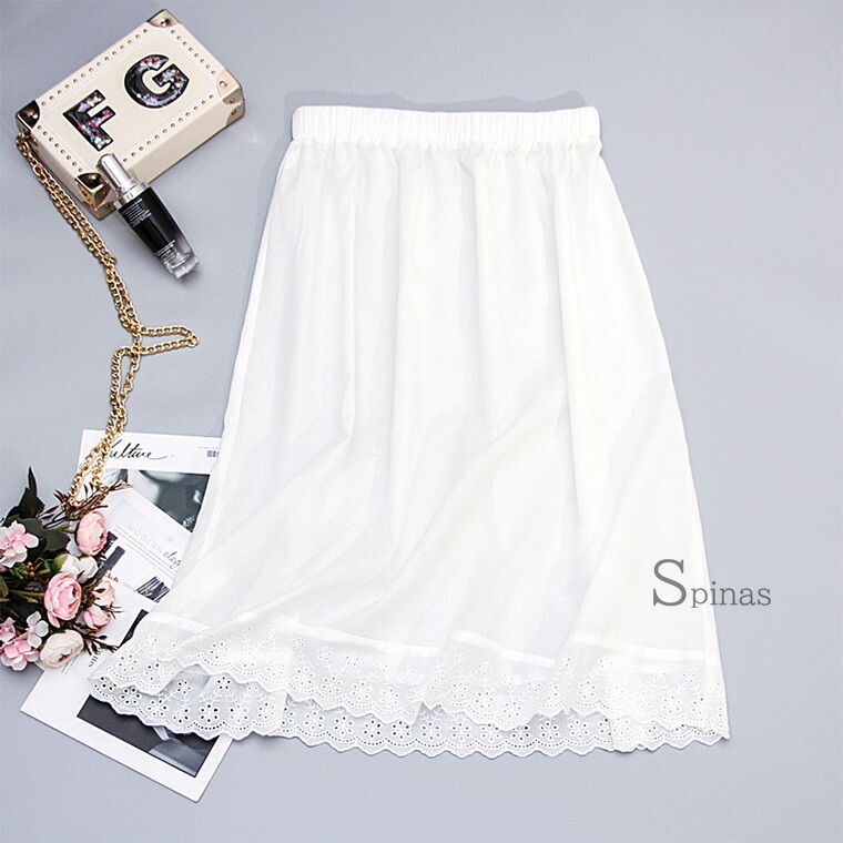 75cmまで 選べるスカート丈 スカラップ ペチコート ペチスカート スカート ナチュラル ガーリー 綿 コットン レース ロング丈 白 裾レース スカラップレース 重ね着 インナー