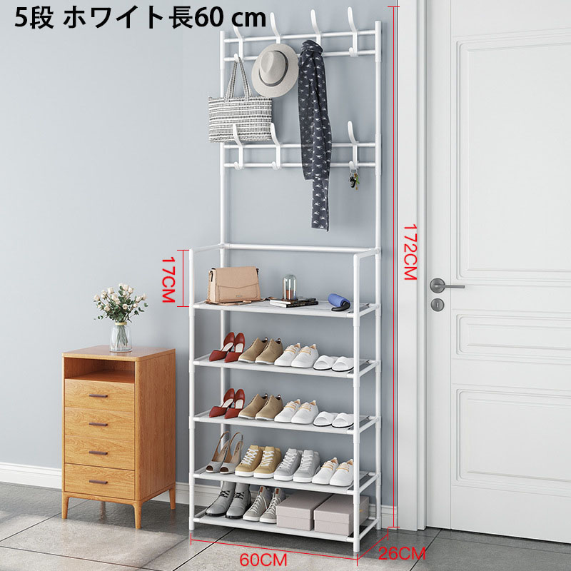 シューズラック 靴 収納 鉄パイプ 省 4段 ホワイト 4段 ブラック 5段 ホワイト 5段 ブラック 長60 cm 長80 cm