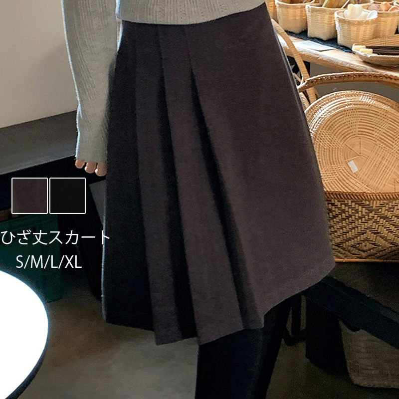 プリーツスカート ひざ丈 スカート 秋 冬 きれいめ フレアスカート ミモレ丈 ボトムス 大きいサイズ スカート ライン フレア ラシャ 防寒 暖かい 厚手 脚長効果 着回し黒 グレー