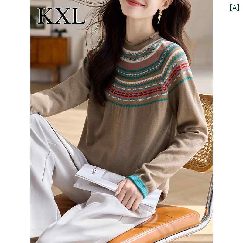 トップス レディース おしゃれ カジュアル 春秋冬 ゆったり 体型カバー セーター シック ニット フェアアイル