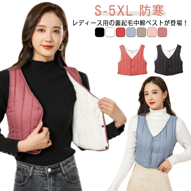 インナーベスト 裏ボア あたたかい 軽量 中綿ベスト レディース インナーベスト ショート丈 ショートベスト 中綿 防寒 アウター ノースリーブ -5