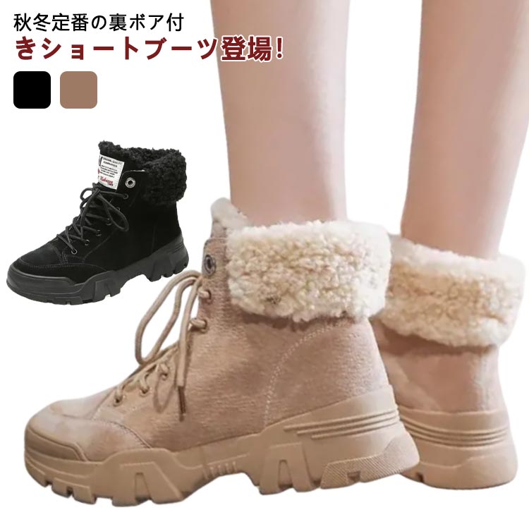 厚手ボア ムートンブーツ レディース ボア スノーブーツ ショートブーツ 裏起毛 防寒 シューズ 秋冬