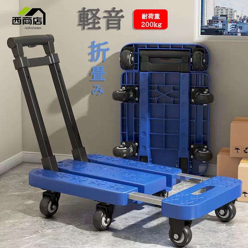 台車 折りたたみ 耐荷重200 軽量 キャスター付き 荷台伸縮可能 静音 6輪 360度回転 コンパクト ハンドル3段階調整 キャリーカート 家庭用 業務用