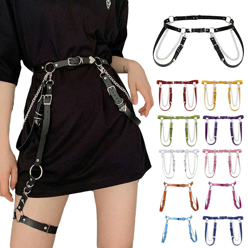 キッズ 大人 ベルト チェーンベルト 吊りバンド サスペンダー ダンス衣装 ダンス用小物 レディース ヒップホップ 衣装 ダンスファッション フェイクレザー ウエスト バック PU