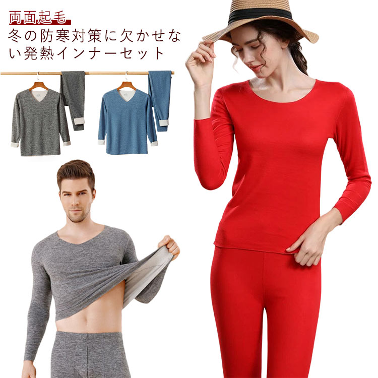 メンズ レディース 上下セット 保温 インナー インナーウェア 防寒インナー 冬用 紳士 婦人 無地 プルオーバー ロングパンツ パンツ レギンス インナーシャツ 防寒肌着 保温肌着