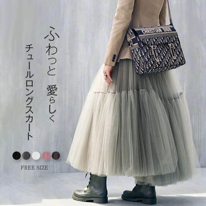 チュールスカート レディース 春 秋 冬 ボリューム ロング スカート マキシスカート ロングスカート ボリュームスカート フリルスカート チュール ウエストゴム マキシ 春夏 おしゃれ 上品 秋冬