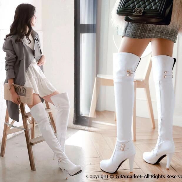 29cm 大きいサイズ ロングブーツ 春秋 秋冬 ロング丈 厚底 9.5cm PU ニーハイブーツ 超ハイヒール