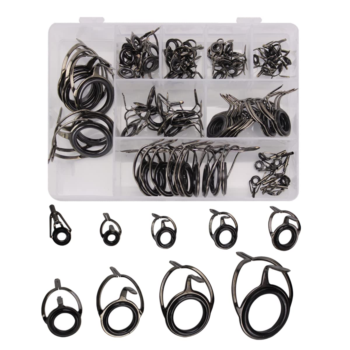 釣り竿ガイド トップガイド 釣り竿修理キット ロッドガイド 両足ガイド 高炭素鋼 セラミック製 交換 修理 釣り竿先端修理キット シーロッドなどに適しています 収納ボックス付き 85点セ ルアーポール