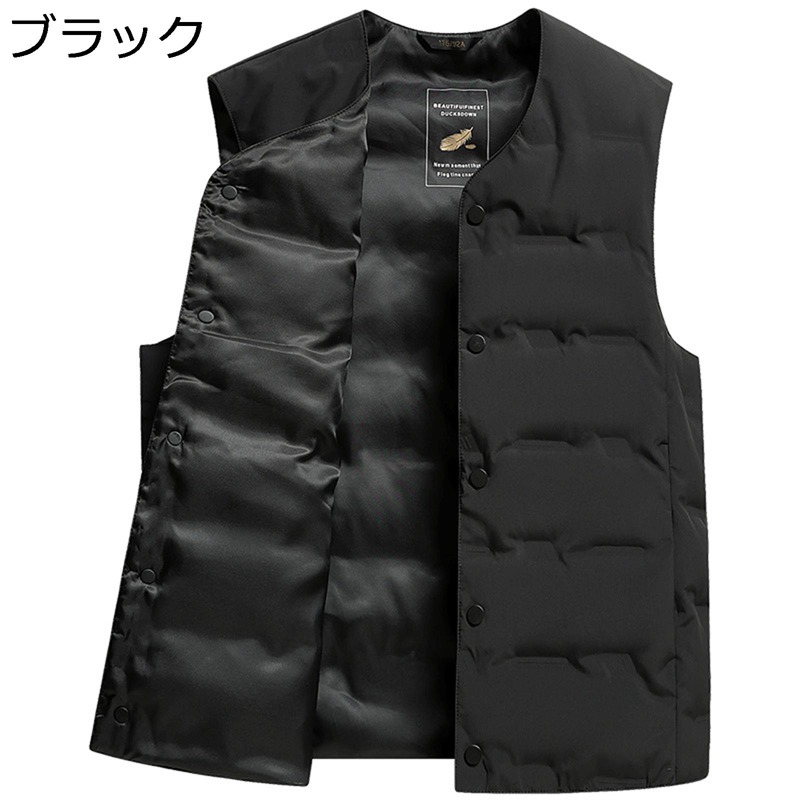 ダウンベスト メンズ インナーベスト 冬用ベスト ビジネス カジュアル 防寒 保温 細身 ネック ボタン 軽量 暖かい 冬物 高齢者 父親 プレゼント 中高年