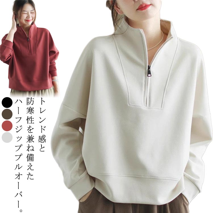 パーカー レディース トップス ファスナー プルオーバー 大きいサイズ スウェット アウター 長袖 秋 冬 春 綿 立ち襟 無地 大人 カジュアル