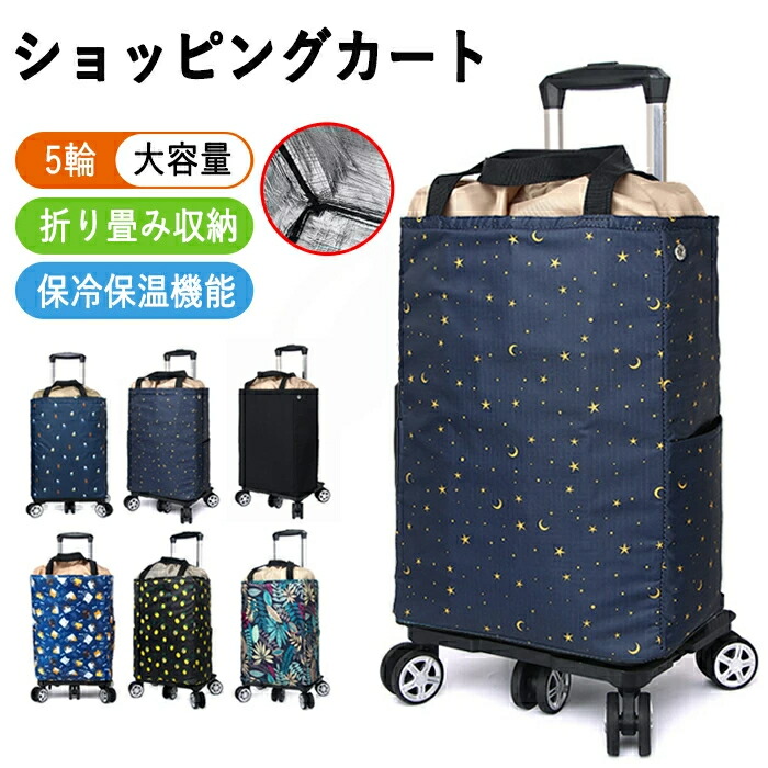 ショッピングカート 折りたたみ 5輪 保冷 保温 バッグ 巾着 ショッピングバッグ キャスター付き 買い物カート シルバーカー おばあちゃん エコバック キャリーバッグ アウトドア 旅行 トートバッグ