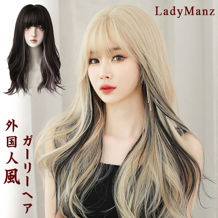 フルウィッグ カール ウィッグ ロング 金髪 ウェーブウイッグ 自然 調節ゴム 前髪 ウイッグ ラフウェーブ ゴールド メッシュ グラデーション 耐熱 フルウイッグ かつら エクス コスプレ